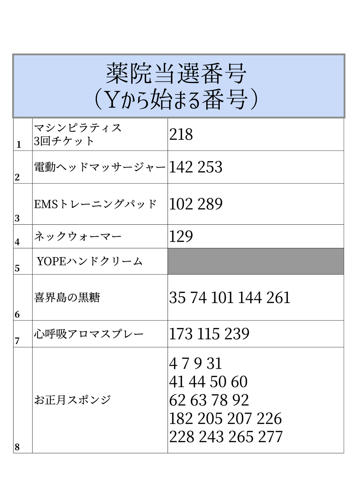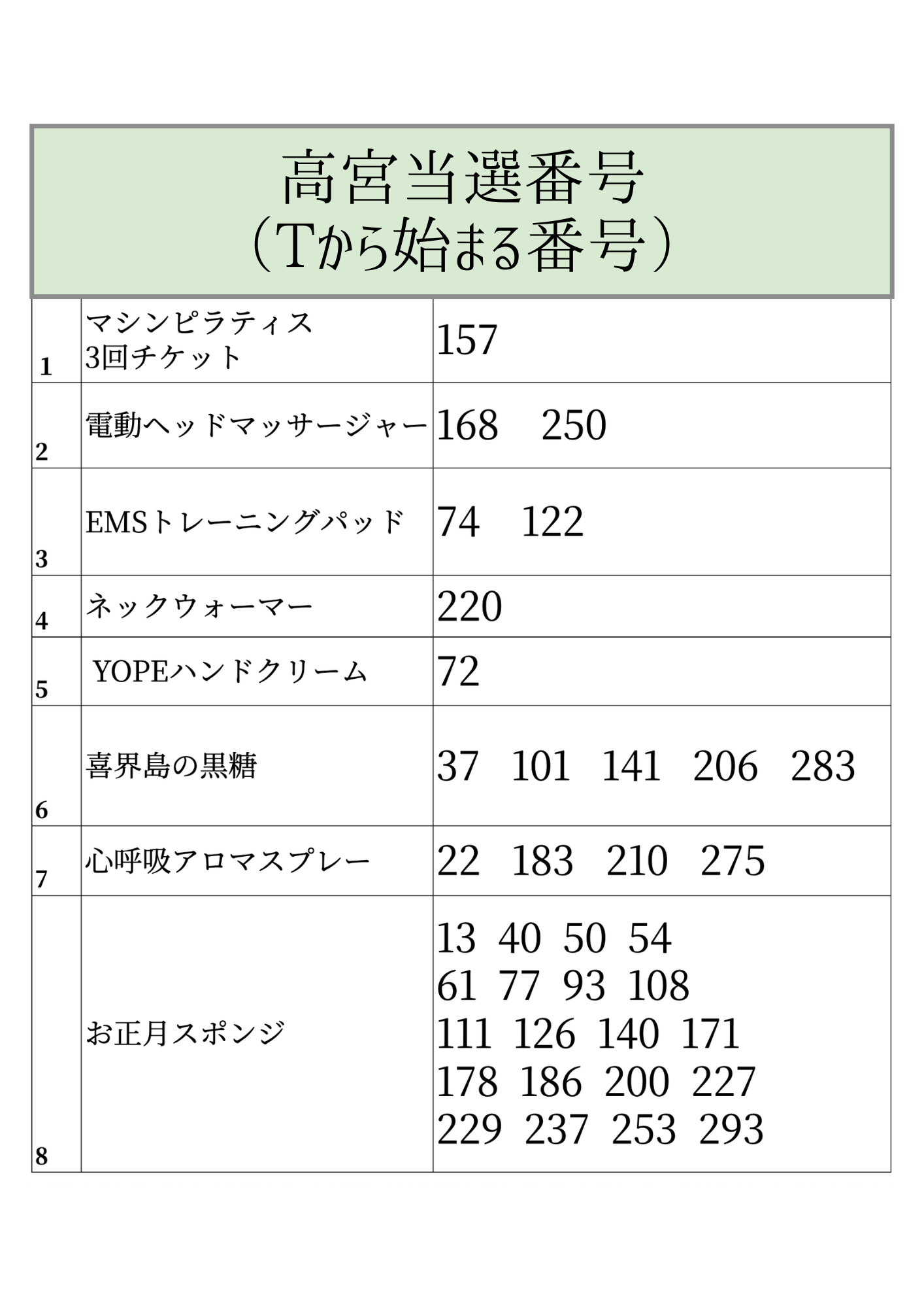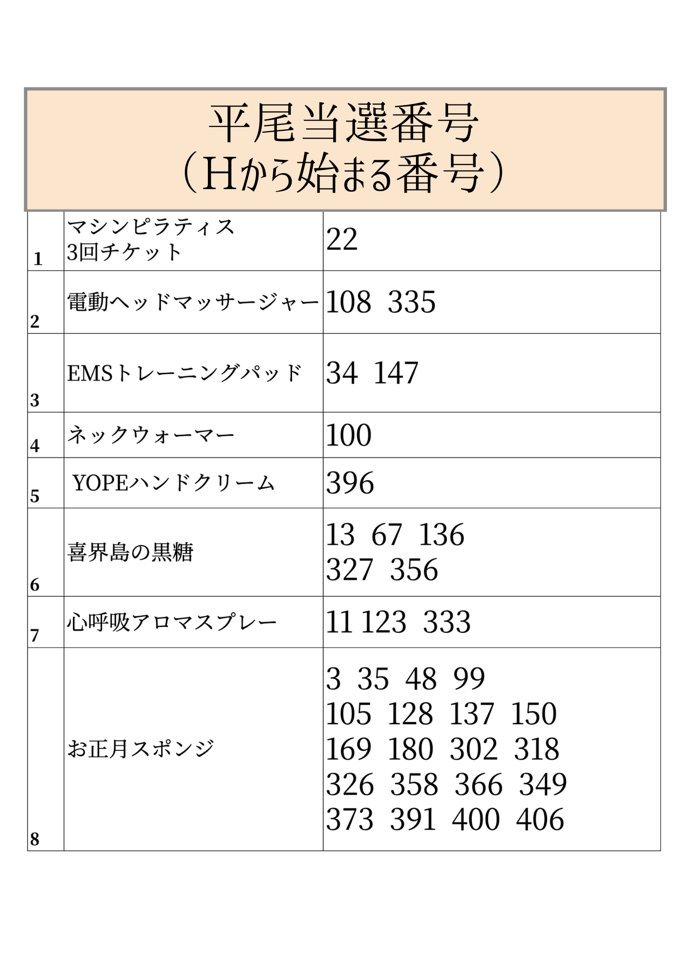 1/4-1/13の間にお配りしたLOTTOの当選発表です!