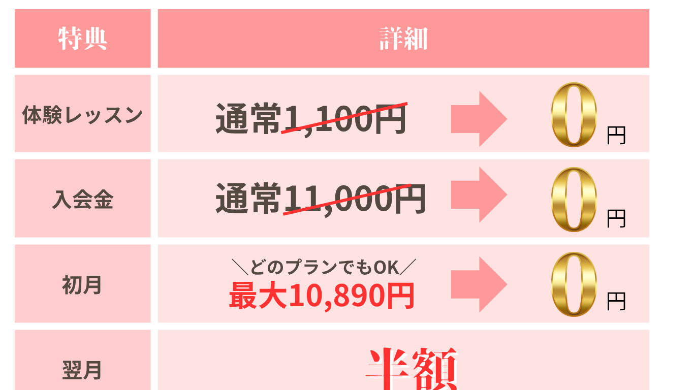 体験レッスン当日に入会手続きをしていただいた方は、